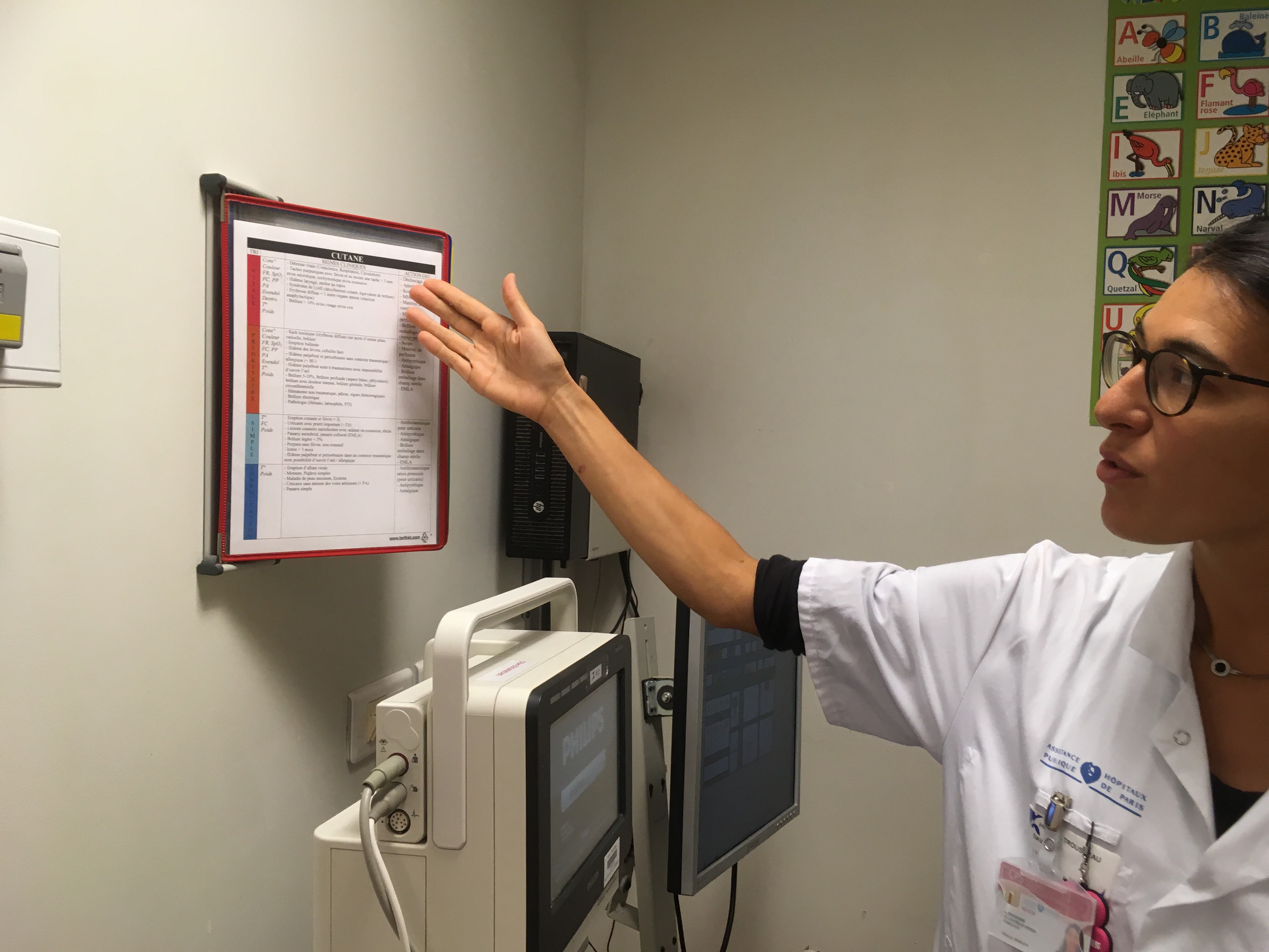 年間15000件くらいのPediatric ERの来院があり、一日平均200件くらいの来院があり。冬場には250-300件の小児を受け入れる。この病院には小児科のほか産科がある。(Necker Hospitalに関しては年間75000件くらい小児救急を診ているらしい。)小児ベッド数は120-130床くらいで冬場にはベッドを探すのが大変である。ER小児科医はスタッフ15人、レジデント10人+インターンが数名おり、外来リーダーが毎日交代でコンサルテーションやベッドコントロールを行っている。勤務に関してはやはりとても厳密で、Max44時間まで。2交代制。ERに続く24時間ベッド(Door Unit)は12床Max Pediatric ERもAdult ERと同様な体制をしいており、Nsがプロトコールに従ってトリアージし、physicianに渡す。実際このトリアージに関しては6ヶ月のER見学とその後2日間の実践トレーニングで行う。このトリアージプロトコールが非常にしっかりとしており、症状別に分かれたものがトリアージ室(3カ所)に置かれている。ER Phycsicianは診断・治療に関して、全て病院としてのProtocolがあり、治療方針も1年に一度bookletを改定して仕様している。初療と簡単な処置を行う。採血もしなければ点滴も入れない。もし挿管が必要な患児がいる場合、SAMUがすでに挿管済みでERを通らずICUに行くか、ERでそう判断された場合には、小児ICUからintensivistが降りてくる。実際ER physicianの挿管は2年で1回しかないと。小児診療室には患者の不安や痛みを取るという目的のため、iPadを使用した診療を行っている。ICUはNICU12床、PICU8床、超低出生体重児4床でICU intensivistがいる。24週500gが最小でNeonatalから18歳までの集中治療を行う。このICUにはECMO使用する部屋が2床あり、ほぼ常に使用している。VV-ECMO、VA-ECMOを年間40-50例。場合によってはパリ郊外のECMO centerにヘリで搬送することもあり。ヘリポートは施設内にはなく、20分くらい離れたところからヘリ搬送を行う。