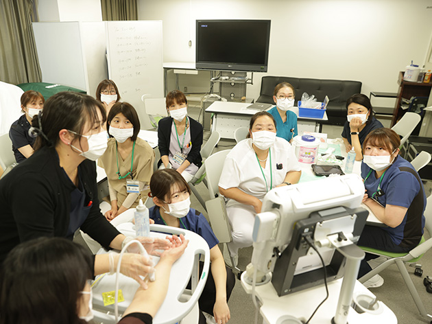 「安全管理」「倫理」をはじめ、高度急性医療を担う人材の育成として「クリティカルケア」等看護実践能力や、ともに成長し合うための教育実践力の向上のための研修など、様々な研修を年間を通して開催しています。