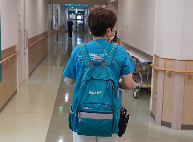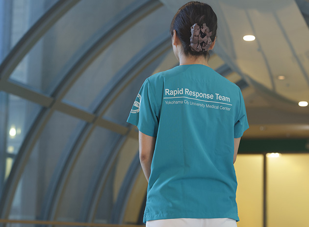 RRT(Rapit Response Team)は急変前の変化に迅速に対応するチームで医師と看護師で構成されています。 院内すべてのエリアを対象に、勤務する職員が異変を感じたときに、スタッフからの要請で現場に駆けつけます。臨床推論やコンサルテーション、急変対応を得意とする専門認定看護師を中心に、集中治療や救命の医師たちとともにチーム活動を行います。