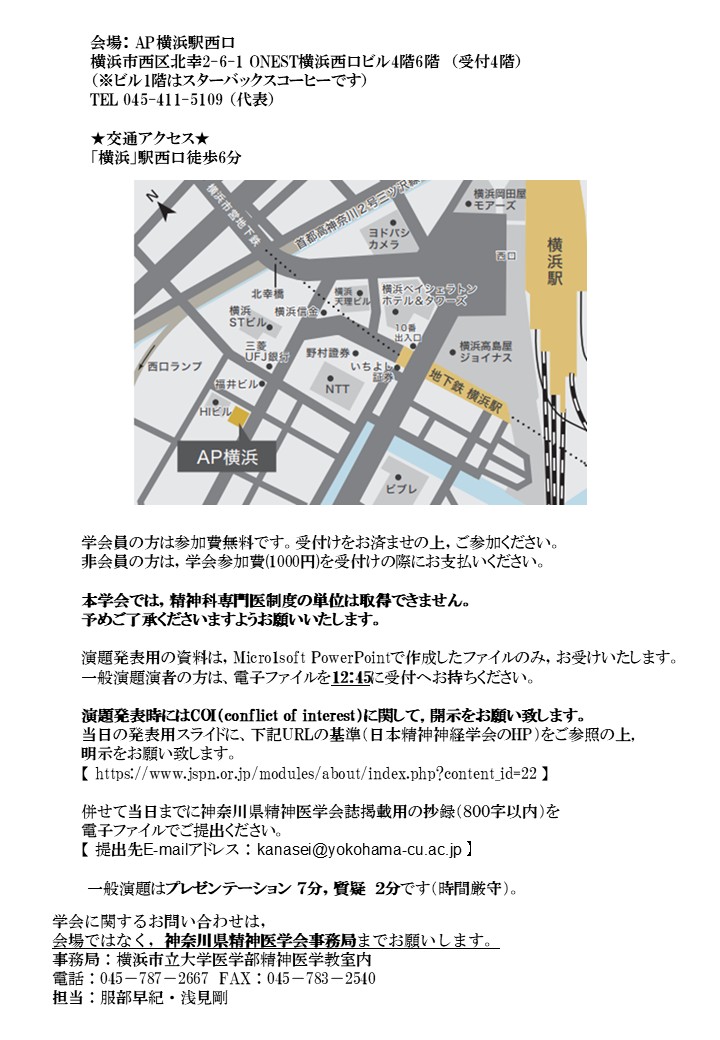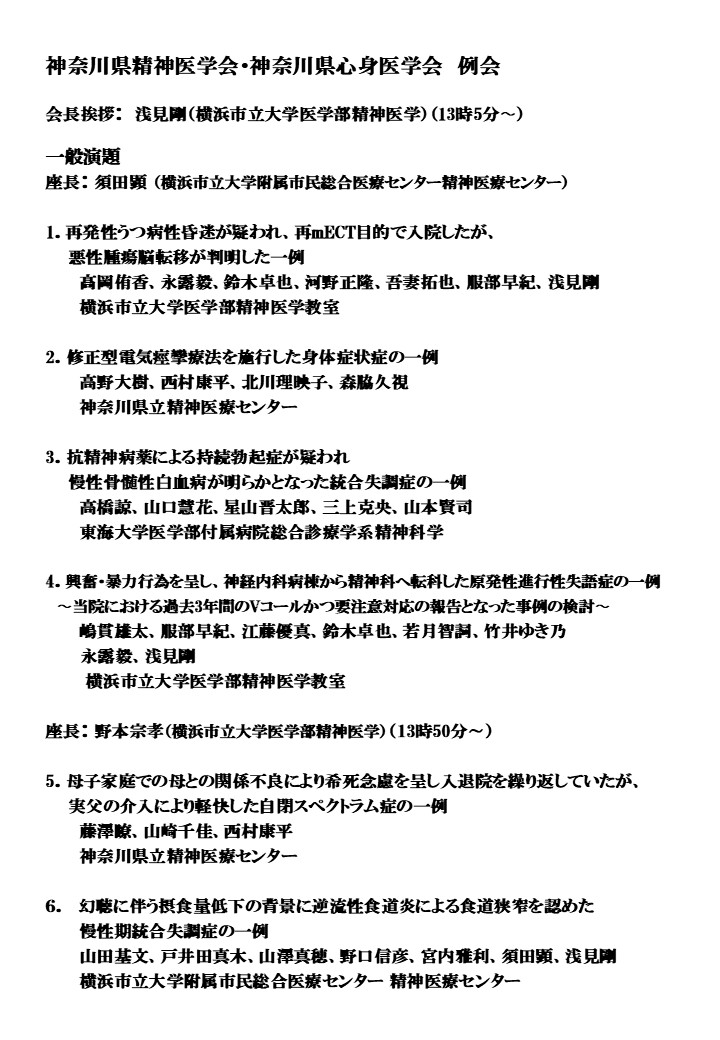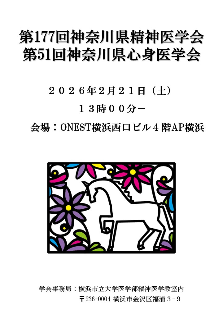 第177回神奈川県精神医学会・第51回神奈川県心身医学会のプログラム(2026年2月)のお知らせ