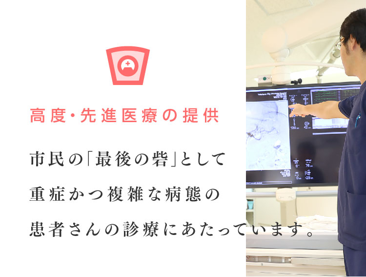 高度・先進医療の提供 市民の「最後の砦」として重症かつ複雑な病態の患者さんの診療に取り組んでいます。