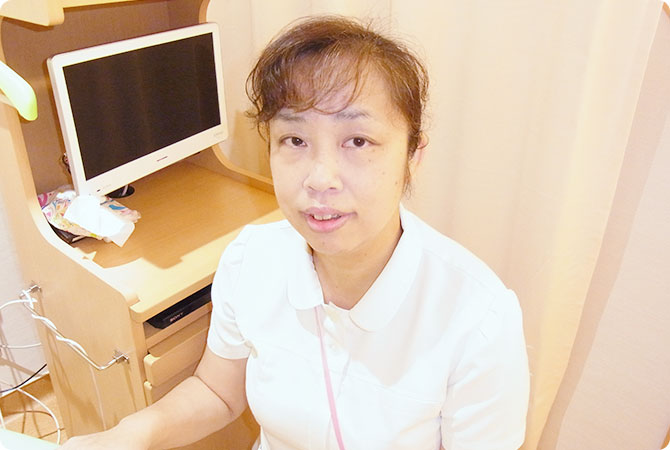 近年の高齢化により、患者様の主たる療養場所は病院から在宅へ移行してきており、治療期の患者様は通院治療の時期が長くなります。私は外来において、患者様とご家族に対し、少しでも安心した療養生活が送れるように生活の質の維持・向上を目指した看護を提供していきたいと考えています。
